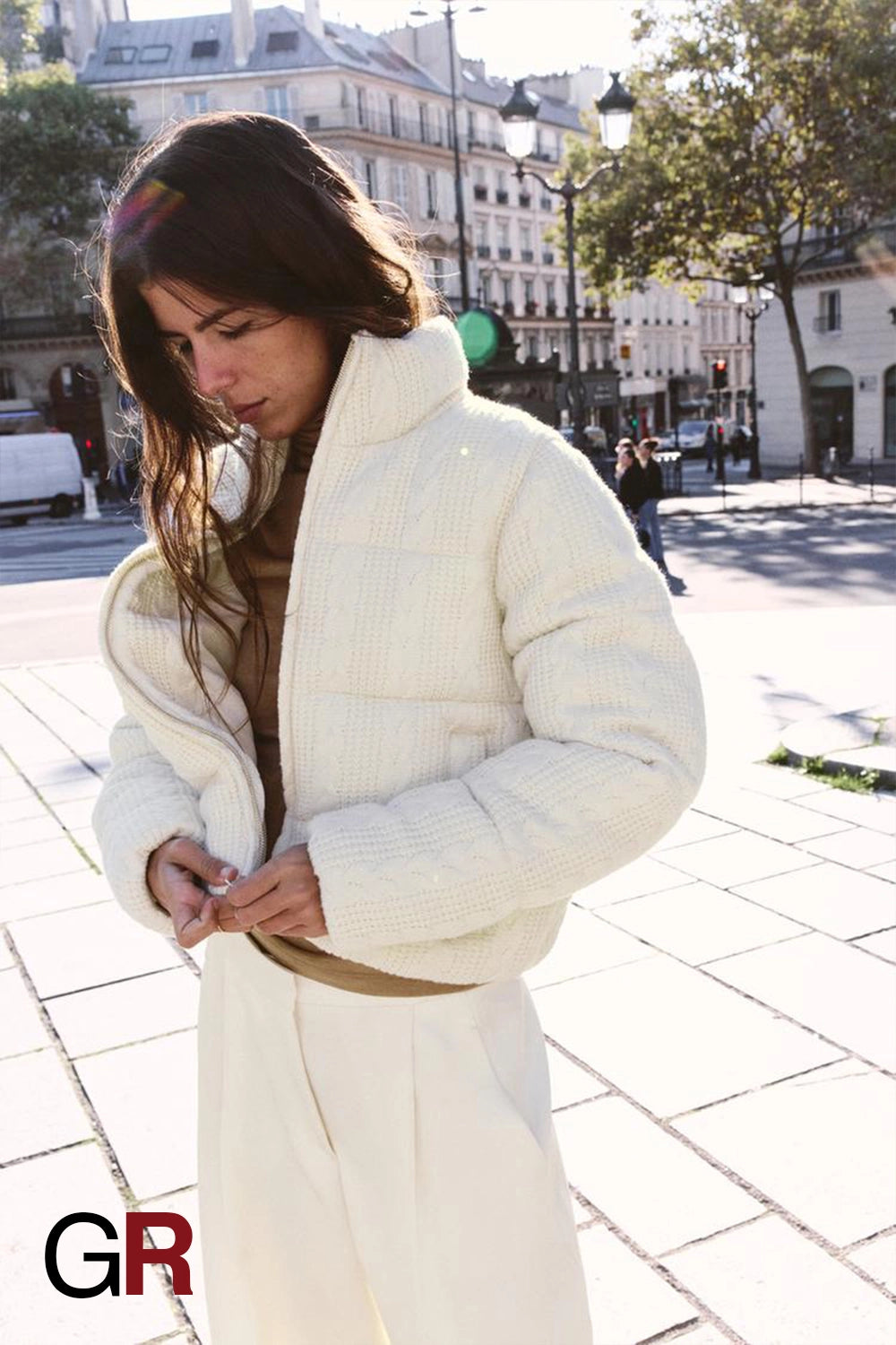 The Ivory Cable Puffer merges knit texture with modern insulation—panels quilted in cable-stitch, stand collar, and a cropped, waist-skimming length that flatters without bulk. Equal parts cozy and polished.